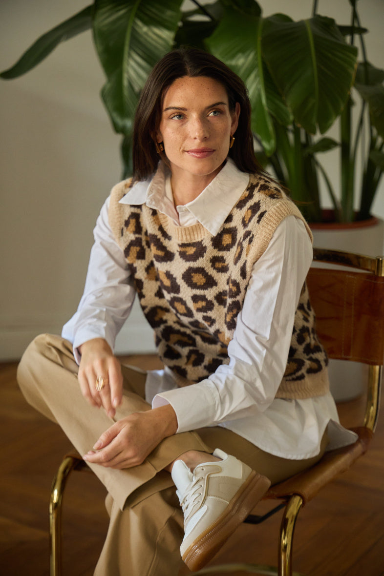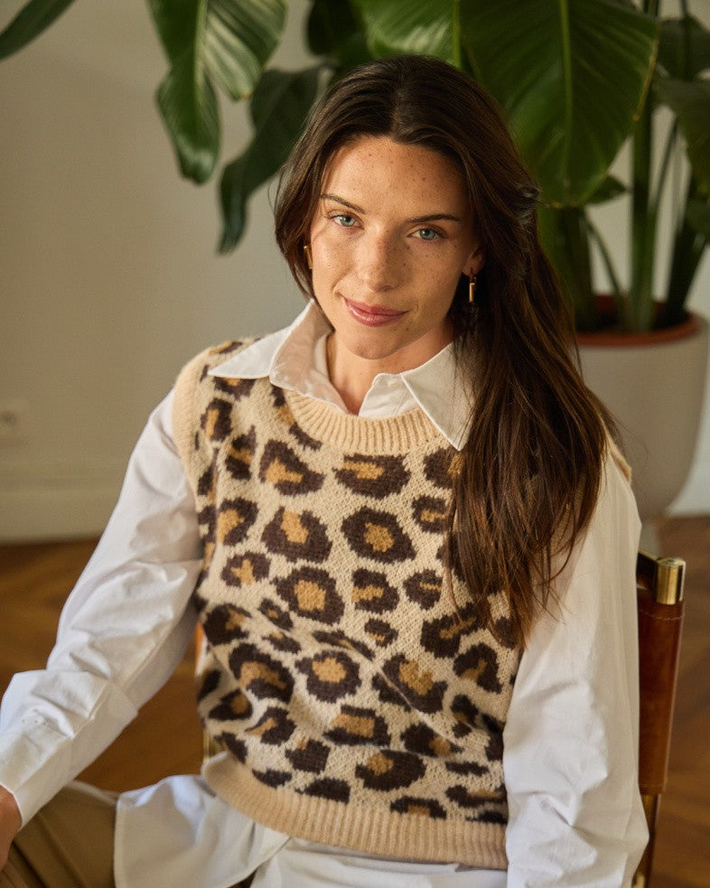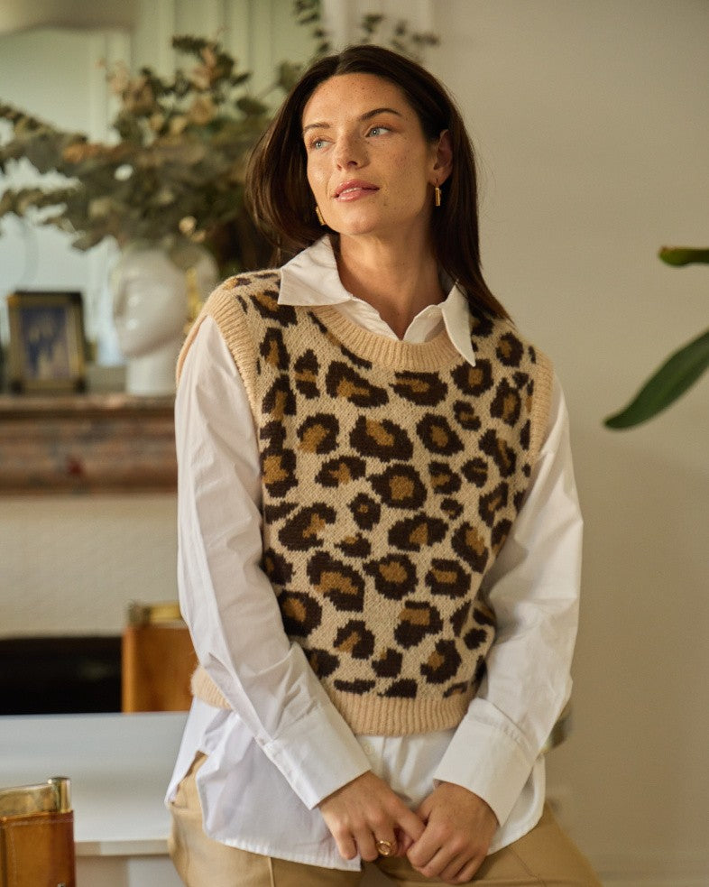 Unser Leo Pullunder ist das perfekte Statement-Piece für alle, die es cozy mit einem Hauch Wild lieben. In Beige mit coolem Leomuster, kastig geschnitten und leicht verkürzt – perfekt zum Layern über Hemden, Longsleeves oder einfach solo.