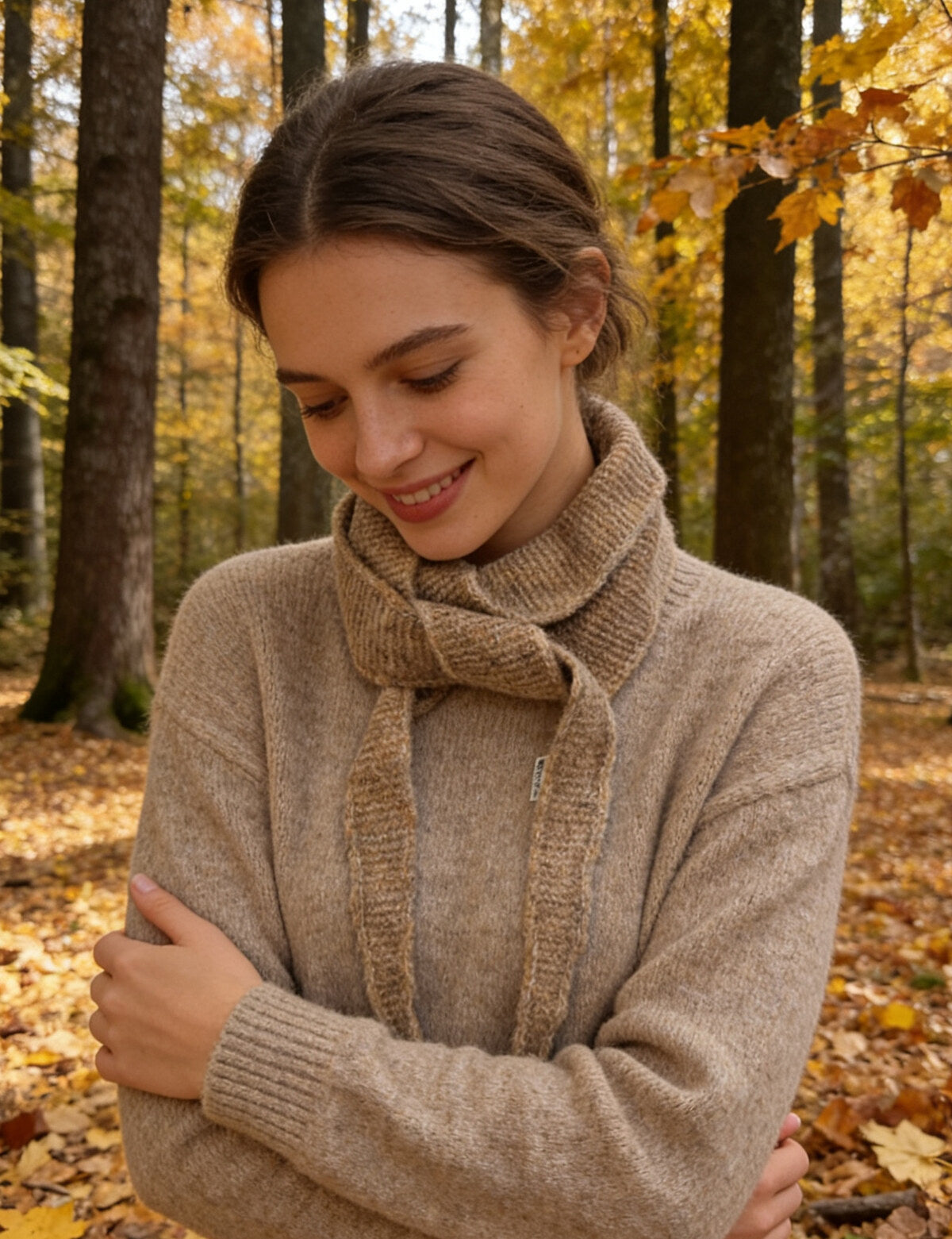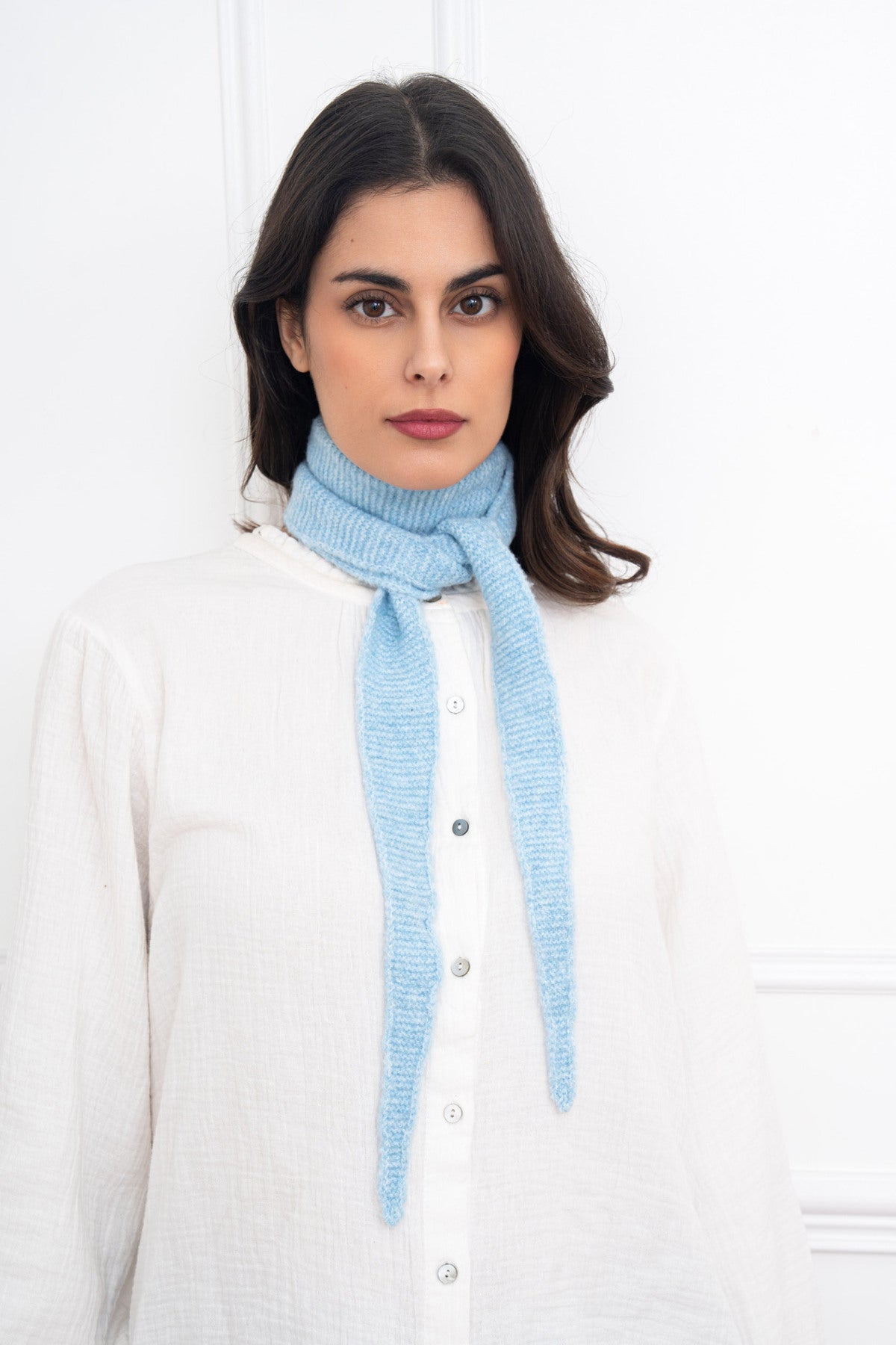 Der Sophie Schal ist das perfekte feine Strickaccessoire für jeden Tag. Lang, schmal und superleicht, schenkt er angenehme Wärme, ohne aufzutragen. Das weiche, flexible Strickmaterial liegt sanft auf der Haut und macht ihn ideal für die Übergangszeit.